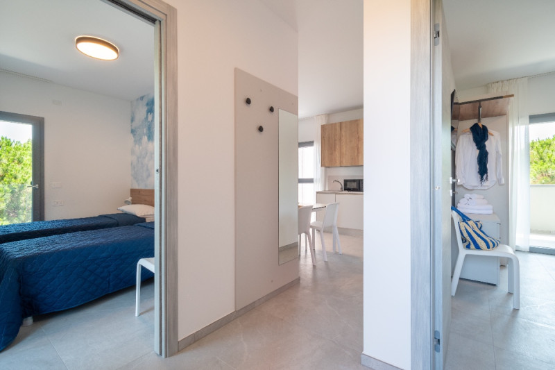 One Life Suite leží v Bibione zhruba 450 m od hlavnej pláže Bibione Spiaggia. Samotné centrum s pešou zónou a obchodmi je vzdialené cca 100 m. Povestné letovisko Bibione ponúka maximálne spoločenské vyžitie, ako pre malých návštevníkov, tak pre mládež túžiacich po zábave aj pre rodiny s deťmi. Nájdete tu celý rad zábavných podnikov, lunapark, najbližší aquapark v stredisku Lignano (10 km), Caorle (44 km) alebo Jesolo.