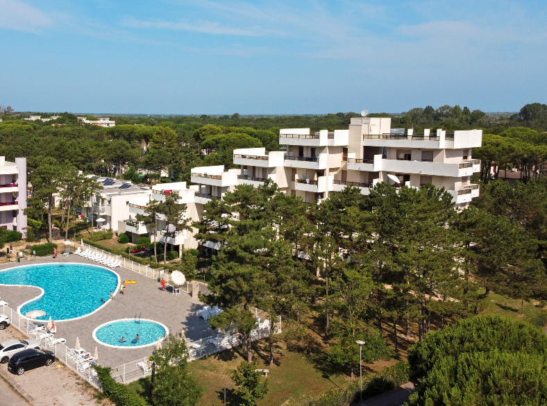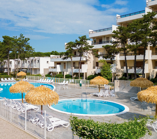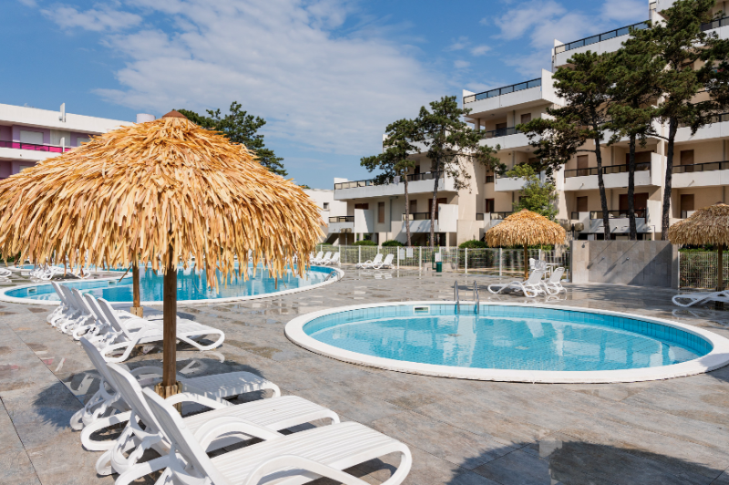 Apartmány s bazénom v časti Lido del Sole v Bibione. Ideálne miesto pre rodinnú dovolenku aj odpočinok.