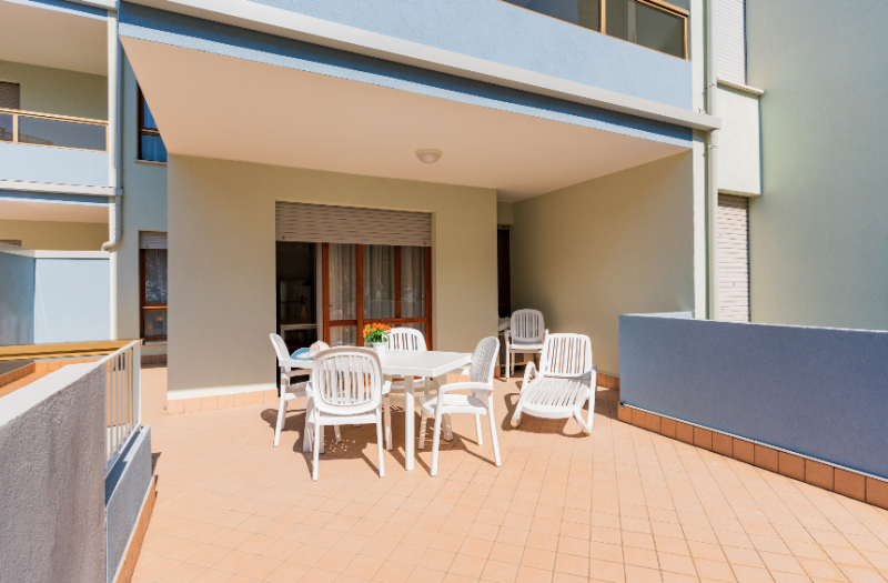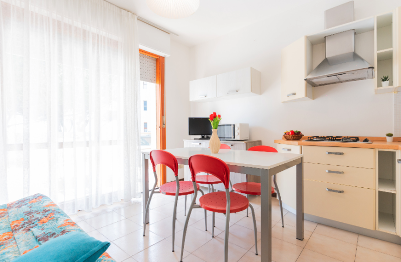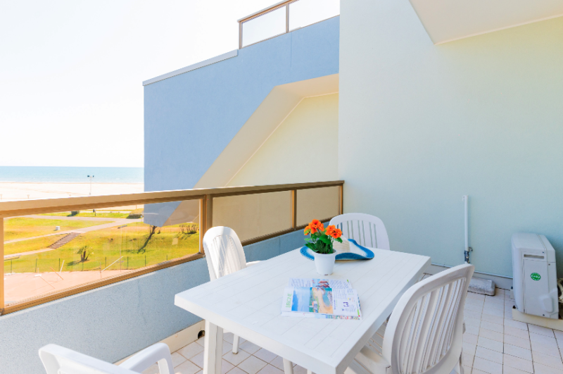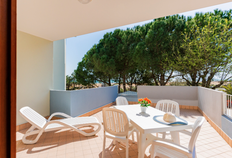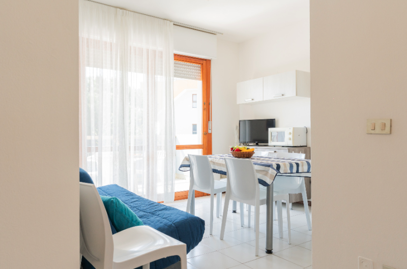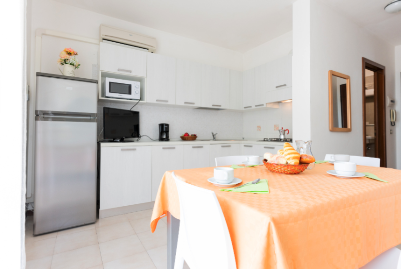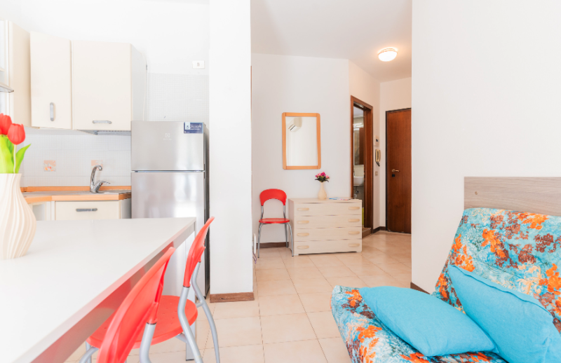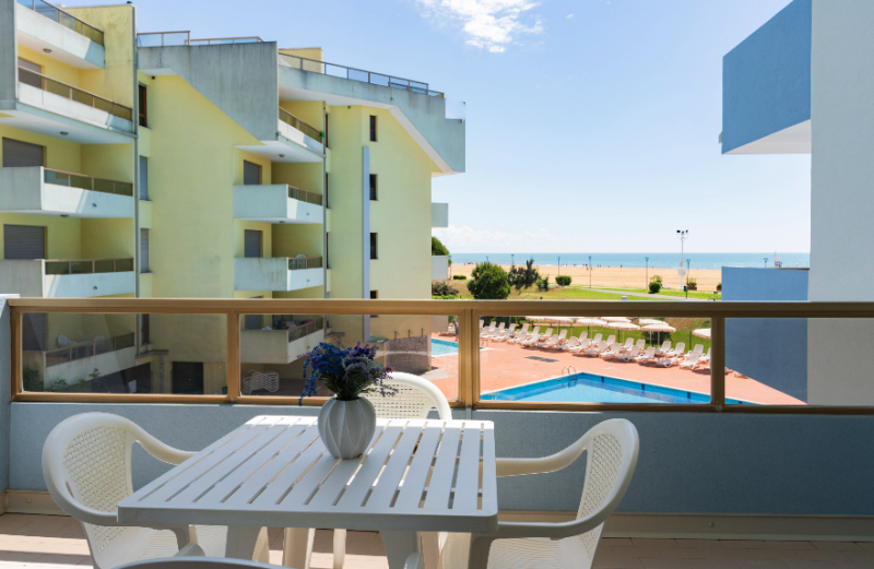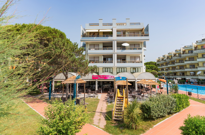 Apartmány s bazénom priamo pri pláži Lido del Sole v Bibione. V blízkosti všetky potrebné služby. V budove je cukráreň a bar.
