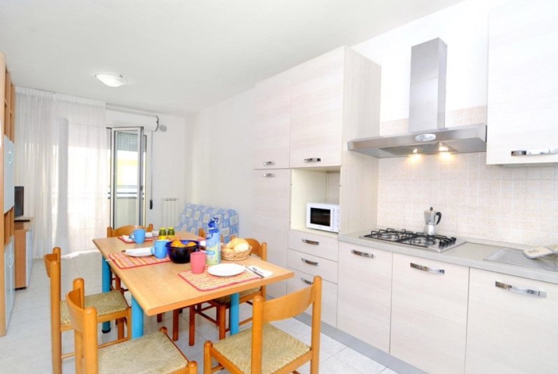 50 m od pláže Ponente, piesok je jemný, zlatistej farby, plážový servis v cene pobytu (slnečník + 2 ležadlá). Pláž je piesočnatá s pozvoľným vstupom do vody, vhodná pre deti. Na pláži sú pre malých návštevníkov k dispozícii preliezačky, hojdačky, šmýkačky, atď.
