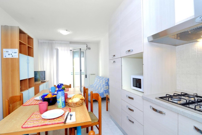 Moderný apartmán s klimatizáciou iba 50 m od pláže Ponente. Súčasťou rezidencie je strešný bazén a terasa.
