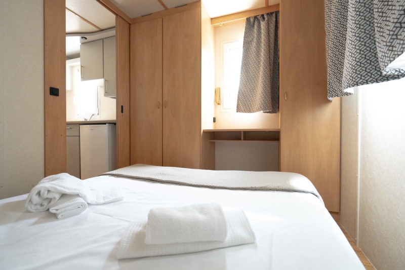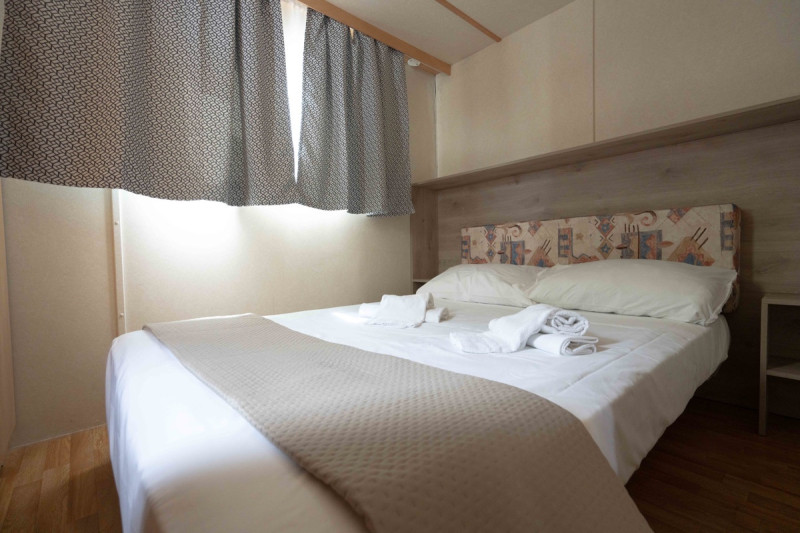 Piesočnatá pláž s jemným bielym pieskom je vzdialená cca 100 m od komplexu. Vstup do mora je pozvoľný a vhodný aj pre menšie deti. Plážový servis je v cene a zahŕňa slnečník + 2 lehátka/mobilhome od 4. radu.